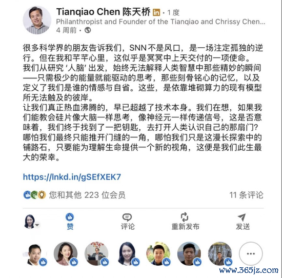 前阵他在Linkedin上发表了一条帖子披露心声,他说,“这是一场注定孤独的逆行,但在我和芊芊(注:陈天桥太太,全名雒芊芊)心里,这似乎是冥冥中上天交付的一项使命……